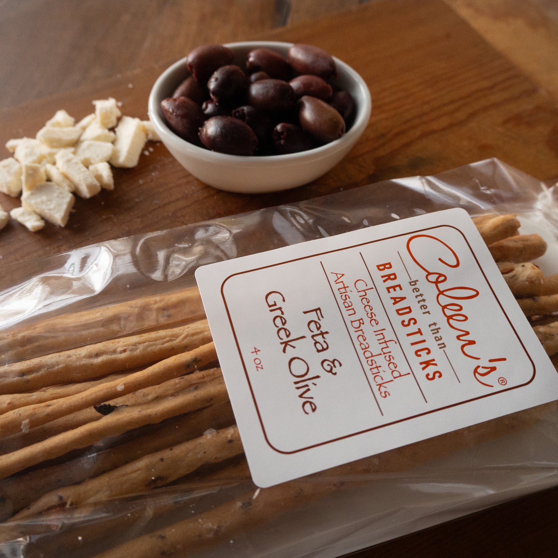 Salty, tangy Feta and fruity, brined Kalamata Olives. A perfect compliment to a Greek salad. 4 oz. net weight.